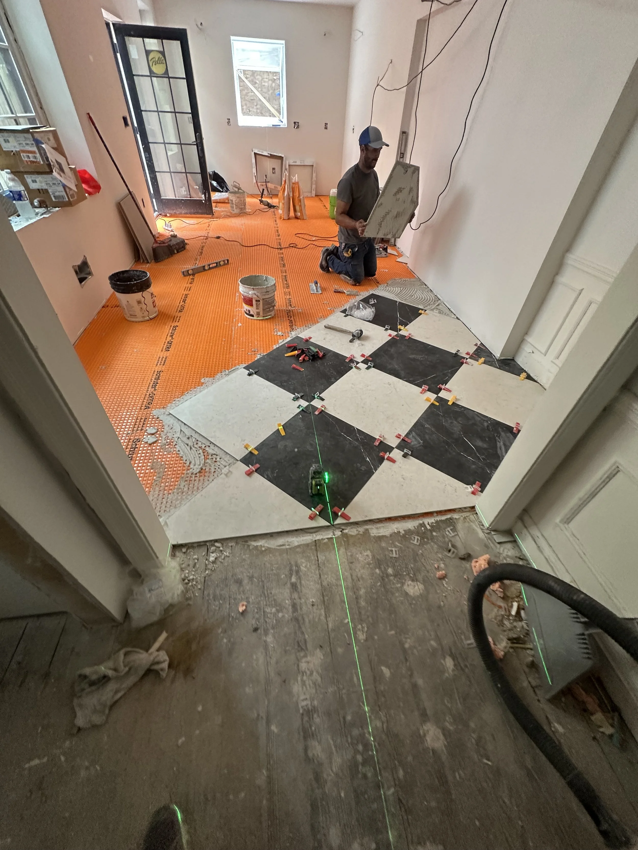 This amazing home was purchased sits on one of Philadelphia’s most iconic blocks and dates back to the early 1800’s. It was purchased directly from the previous owner without any inspections or contingencies. Our scope evolved from an interior remodel to correcting decades of deferred maintenance, performing delicate structural repairs, upgrading the entire MEP system, adding a state-of the art insulation and HVAC package, rewiring, finishing the basement, rebuilding crawlspaces and roof decks, repointing and rebuilding the entire exterior, and outfitting the home with custom, thoughtful details at every level.
